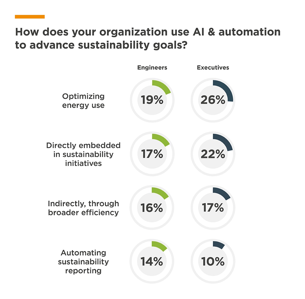 Beyond its potential to deliver innovation and financial benefits, AI can play a role in companies’ pursuit of sustainability goals. In fact, virtually all respondents (99%) say they are using AI and automation to advance sustainability goals in some way.