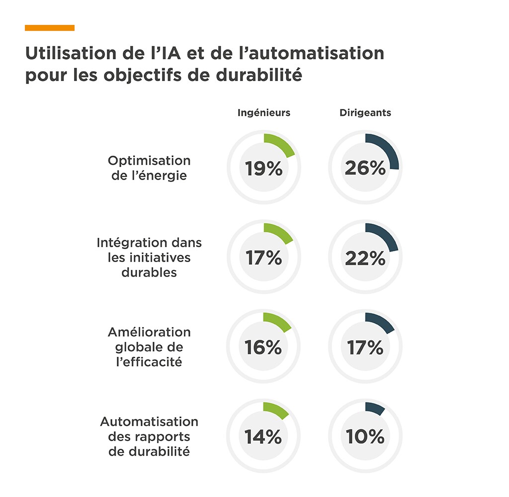 Au-delà de son potentiel en matière d’innovation et de performance financière, l’IA joue un rôle croissant dans la poursuite des objectifs de développement durable des entreprises. En effet, la quasi-totalité des répondants, soit 99 %, indiquent recourir à l’IA et à l’automatisation pour soutenir ces objectifs d’une manière ou d’une autre.