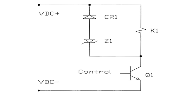 La diode CR1 sert à faire passer la tension de « retour » inverse de la bobine de relais K1 pour protéger le pilote Q1 lors de l’arrêt, mais elle a également pour effet de ralentir la chute du contact ce qui peut dégrader la durée de vie de la charge. Zener Z1 est facultative, mais lorsqu’elle est employée, elle réduit l’effet de ralentissement de la chute de CR1. La tension de Z1 zener est sélectionnée pour ne pas être à plus de 80 % du PIV du transistor Q1.