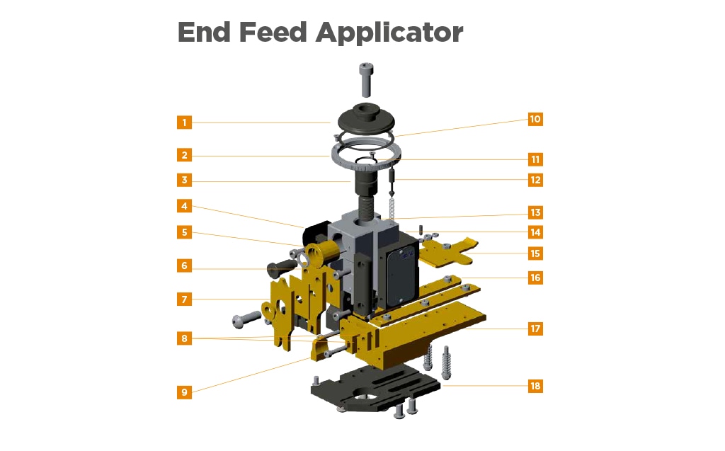- 容易にアクセスできるねじで、迅速なアプリケータ セットアップと調整が可能